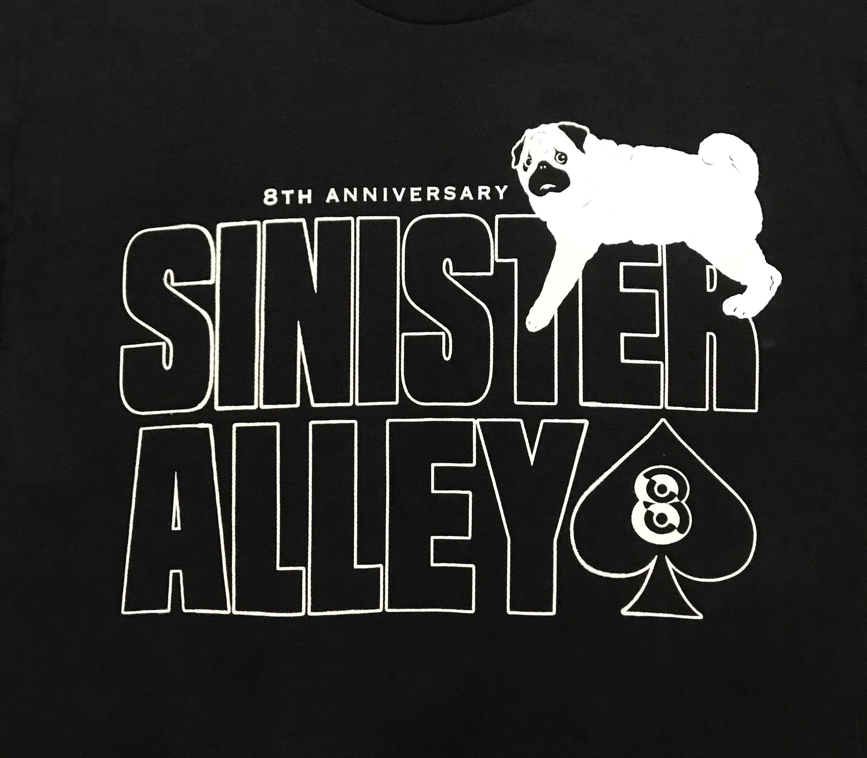 ラブリーアイドル、パグのアッシュくんがシニスターアレイのロゴの上でゆっくりとくつろいでいる形をデザインしました!