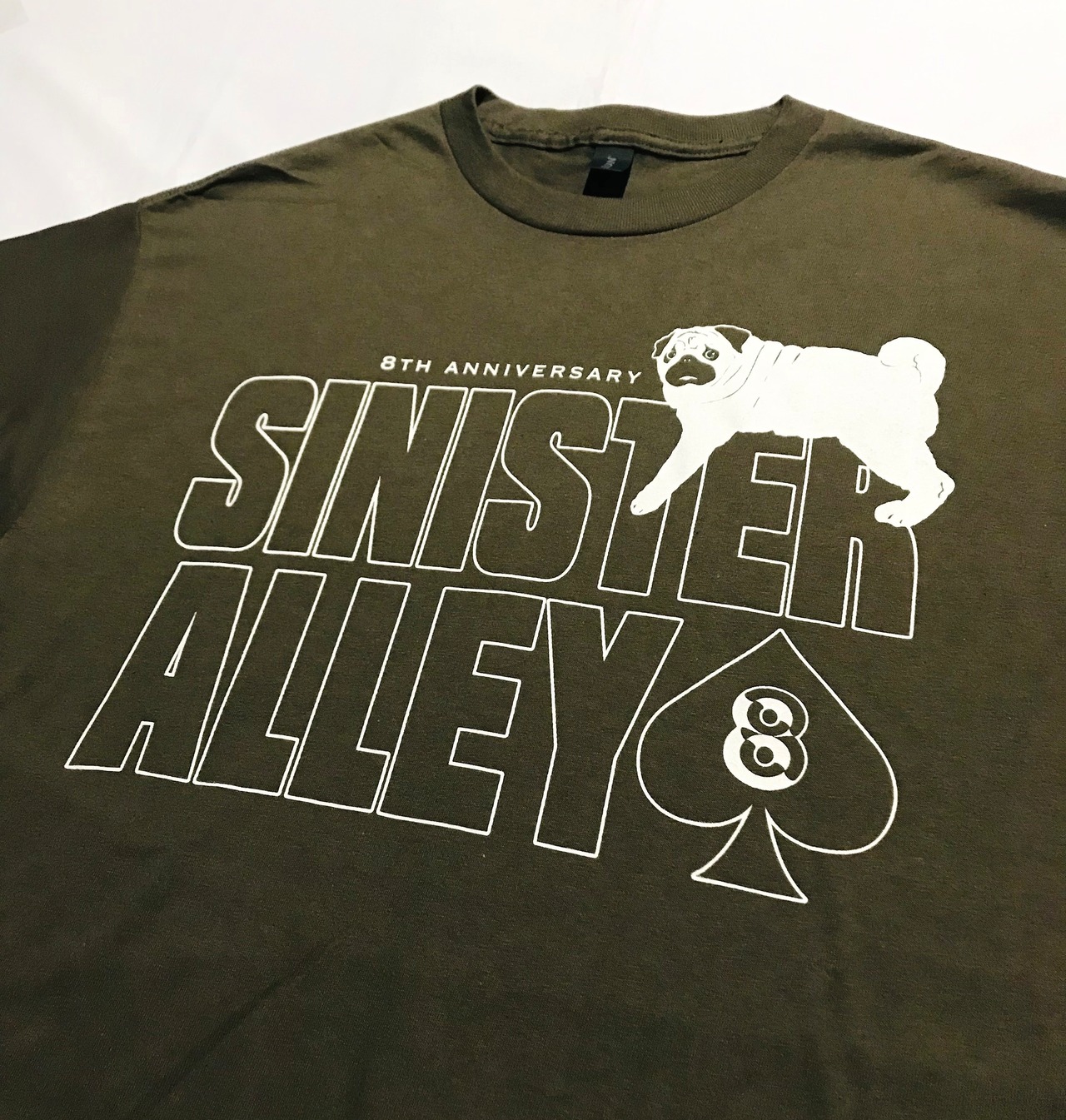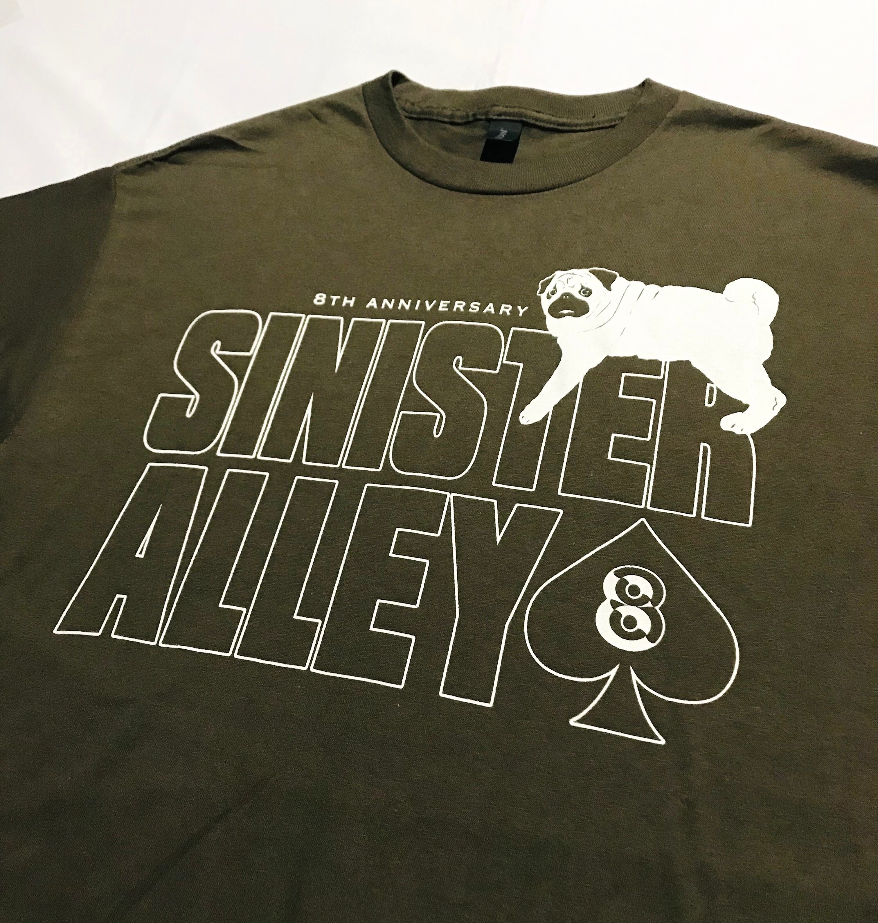 ラブリーアイドル、パグのアッシュくんがシニスターアレイのロゴの上でゆっくりとくつろいでいる形をデザインしました!