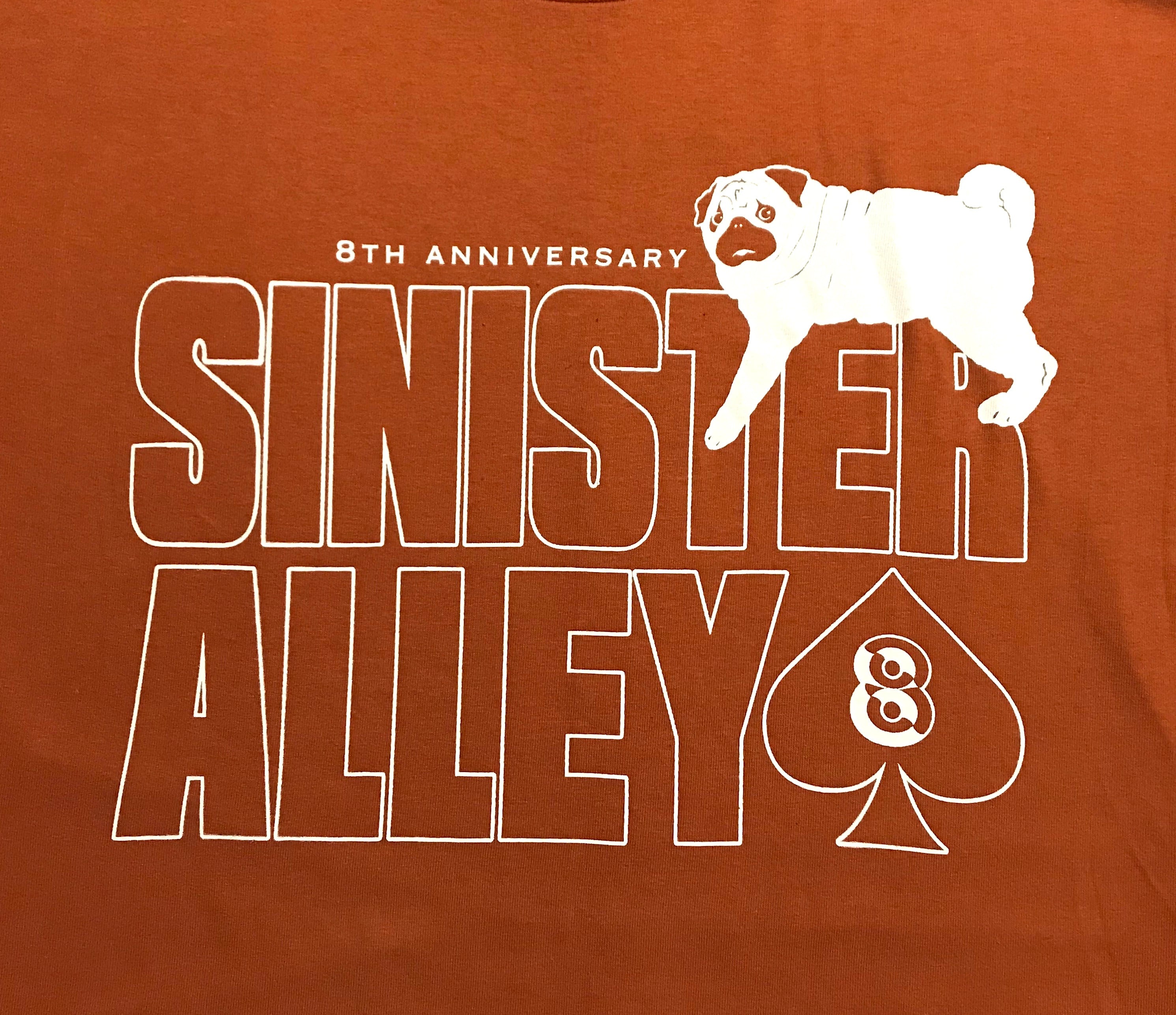 ラブリーアイドル、パグのアッシュくんがシニスターアレイのロゴの上でゆっくりとくつろいでいる形をデザインしました!